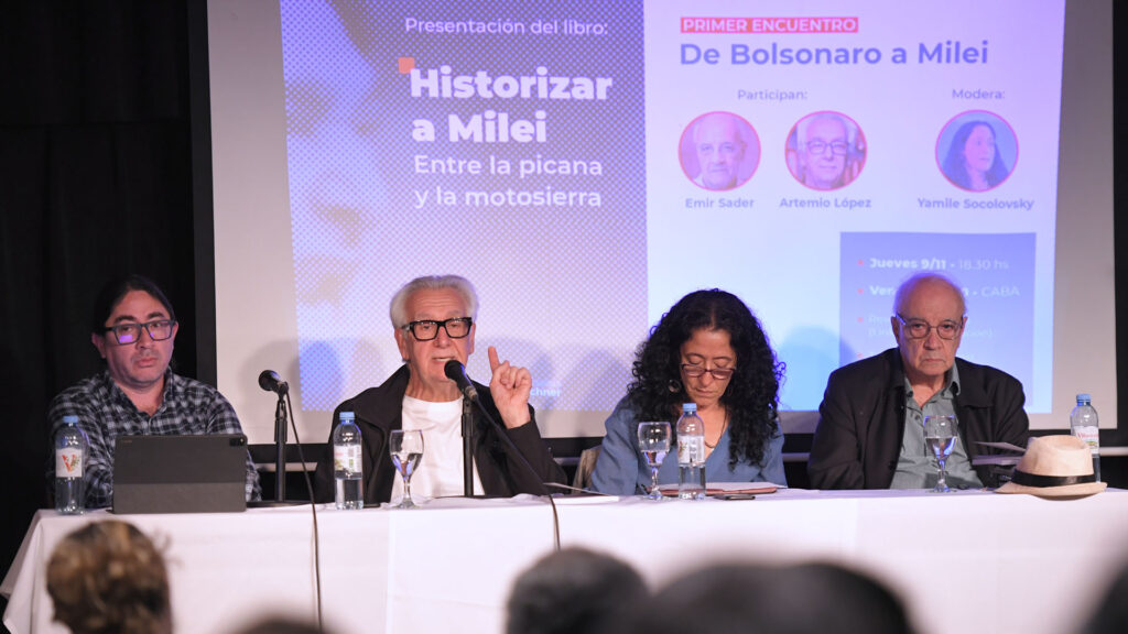 El encuentro estuvo encabezado por el politólogo brasileño Emir Sader y el sociólogo y consultor Artemio López, quienes remarcaron que el candidato libertario “aparece como una novedad” pero en realidad retoma “las fórmulas que el neoliberalismo aplicó en la dictadura”.