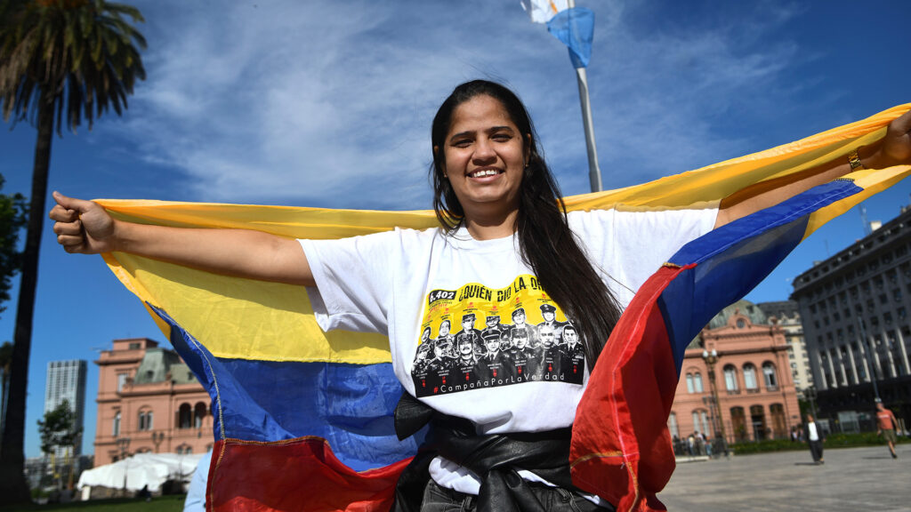 Familiares de las víctimas de ejecuciones extrajudiciales cometidas por miembros del Ejército de Colombia presentaron una querella contra el expresidente colombiana ante la Justicia argentina. “Estamos aquí para visibilizar y así desmantelar la impunidad y el negacionismo que hay en nuestro país”, dijo Laura Piña.