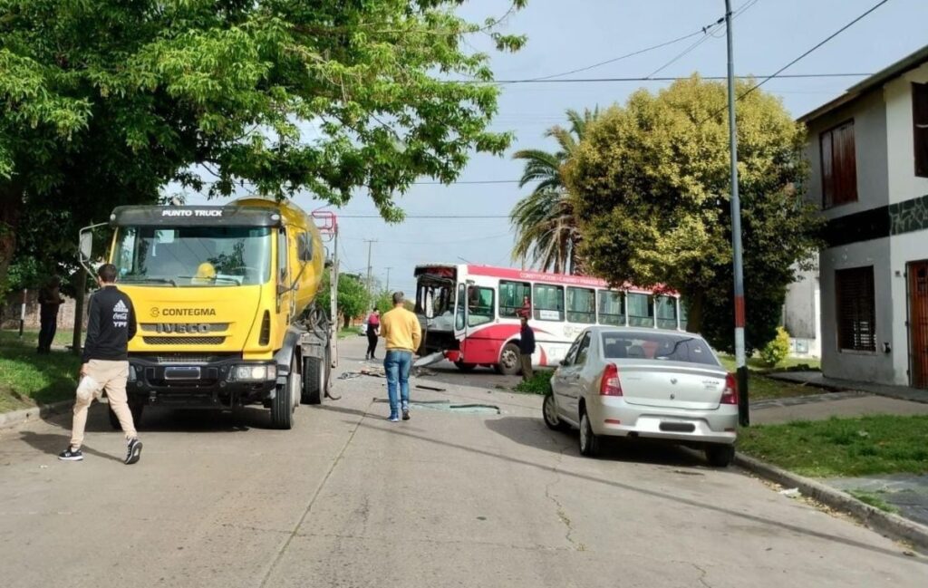 Fuerte choque entre colectivo y camión terminó con dos pasajeros heridos