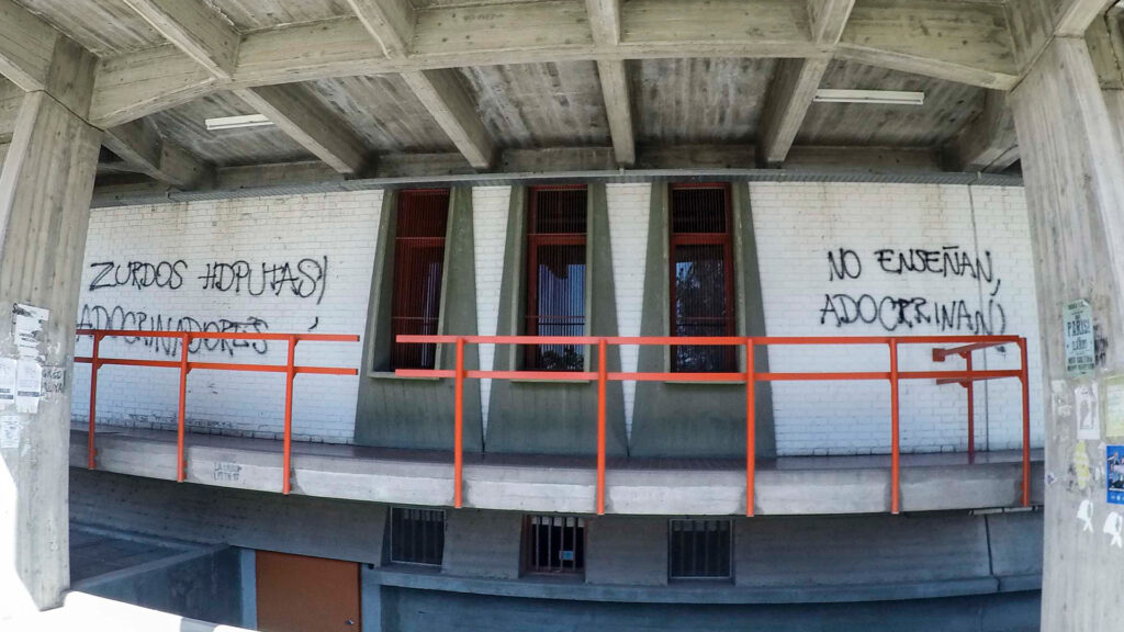 “No les importa el país! Solo quieren carguitos, delincuentes”, “Se les termina la joda, roñosos”, “Chau parásitos, progres y feminazis!”, “Milei 2023! Zurdos de mierda!”, “No enseñan, adoctrinan” y “Antro marxista” fueron algunas de las consignas que aparecieron pintadas en en la Facultad de Ciencias Políticas de la UNCuyo.