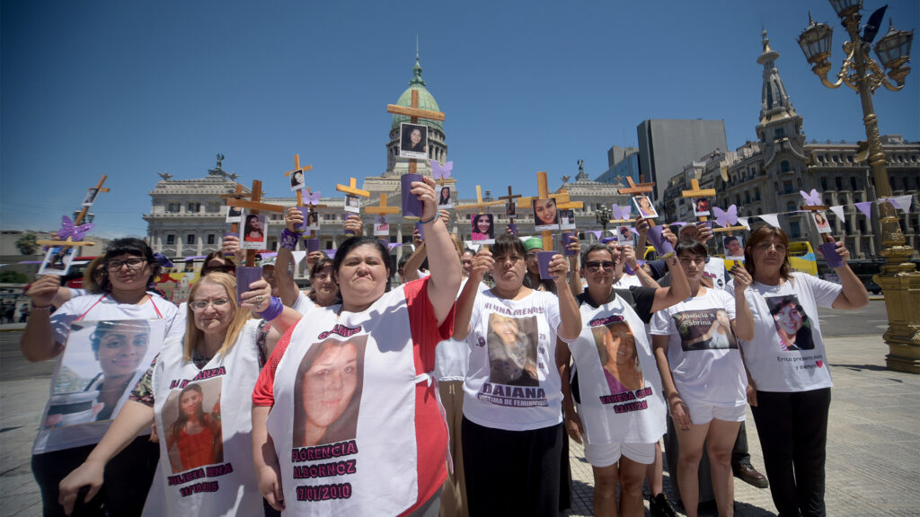 En el Día de Lucha contra la Violencia de Género con 170 cruces en la Plaza de los Dos Congresos se reunieron hijas, madres y sobrinas de mujeres asesinadas por la violencia machista.