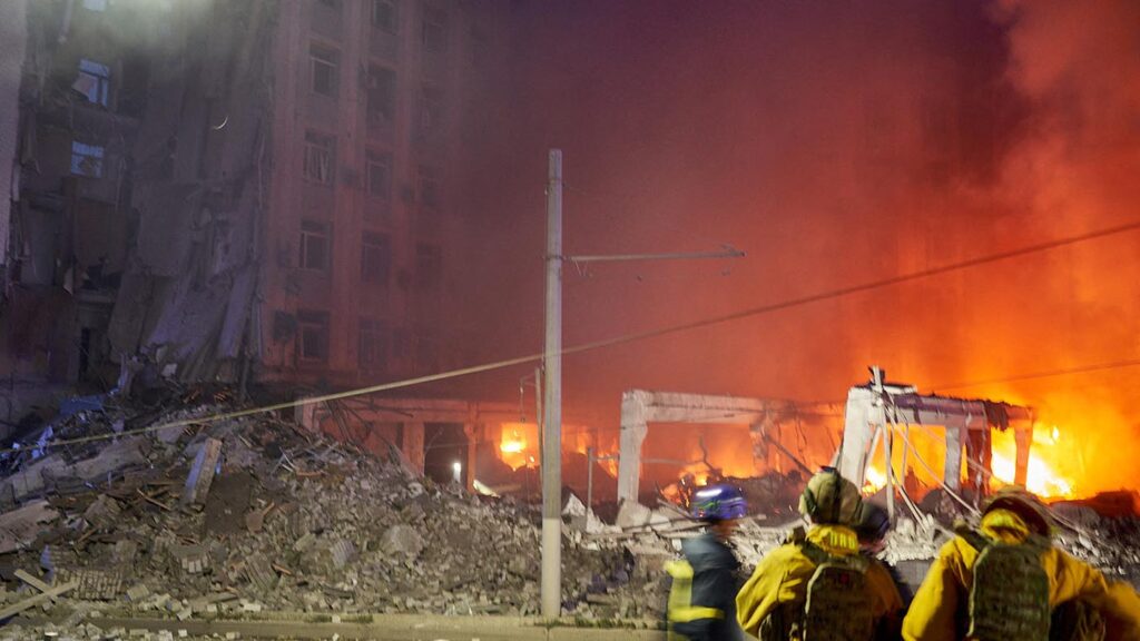 La Fuerza Aérea ucraniana informó que el bombardeo, el segundo en una semana contra Kiev luego de un largo periodo sin ataques, comenzó a la madrugada con el lanzamiento de 10 misiles que fueron derribados. El Ministerio de Salud afirmó que 53 personas resultaron heridas, entre ellas dos niños.