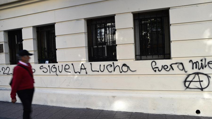 Atacaron la sede de la embajada de la Argentina en Chile, con mensajes contra Milei