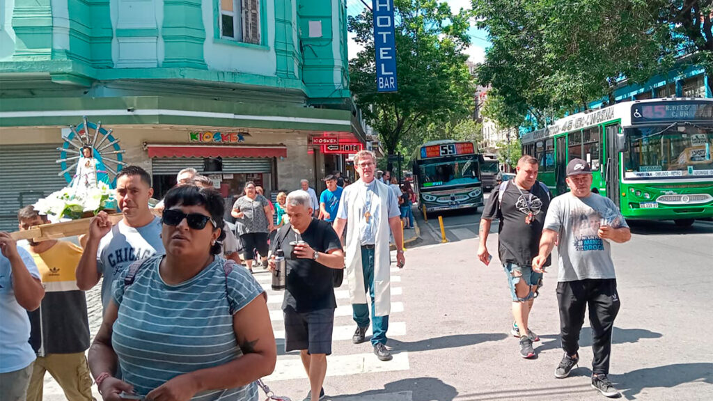 La prostitución callejera y las drogas son una herida abierta. Télam acompañó la misión callejera de Jorge García Cuerva y peregrinos del Hogar de Cristo que incluyó tres comedores.
