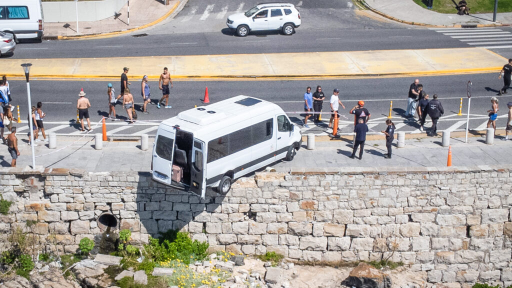 Mar del Plata: una camioneta sin chofer cruzó la costanera y quedó colgada de un murallón