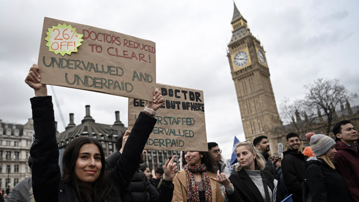 Médicos residentes de Inglaterra iniciaron la huelga más larga en la historia de su sistema de salud