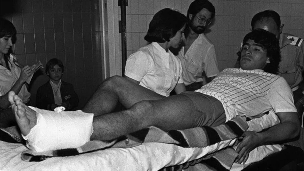 El domingo 8 de enero de 1984, tras una fractura en el tobillo que le provocó el defensor del Athletic Bilbao Andoni Goikoetxea, el 10 del Barcelona volvía a calzarse los pantalones cortos y encarrilaba la victoria del equipo del DT César Luis Menotti sobre Sevilla por 3-1, por una nueva fecha de la Liga española.