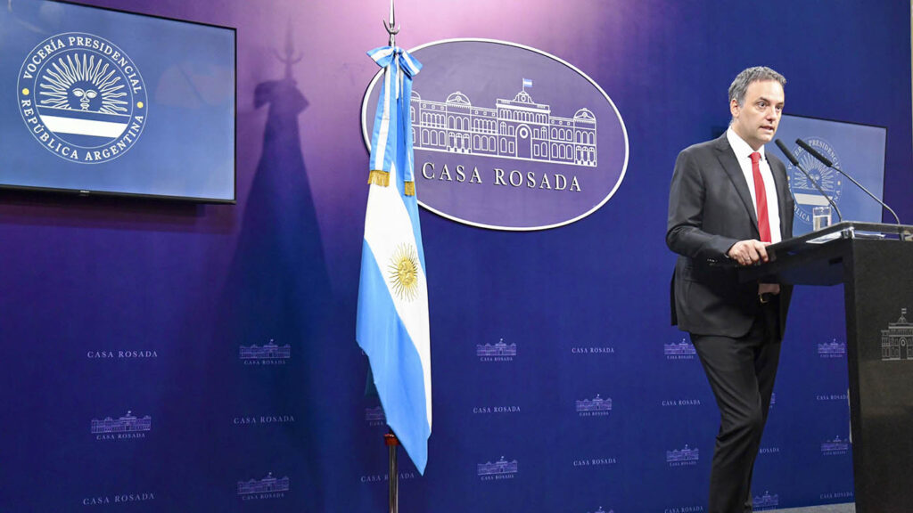 El vocero presidencial dijo que “dentro del paquete fiscal también se retiran las facultades delegadas en materia fiscal y previsional”. Consultado sobre el incendio en el Parque Nacional Los Alerces, afirmó que si se descubre que fue intencional, “los responsables tendrán que estar tras las rejas o extraditados”, según corresponda.