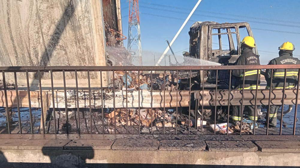 Se incendió un camión sobre el puente Zárate Brazo Largo