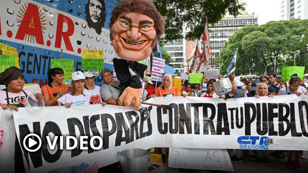 La manifestación con ollas vacías y carteles se desarrolló frente al edificio del exministerio de Desarrollo Social para exigir a la ministra Sandra Pettovello el envío de viandas a los comedores y merenderos.