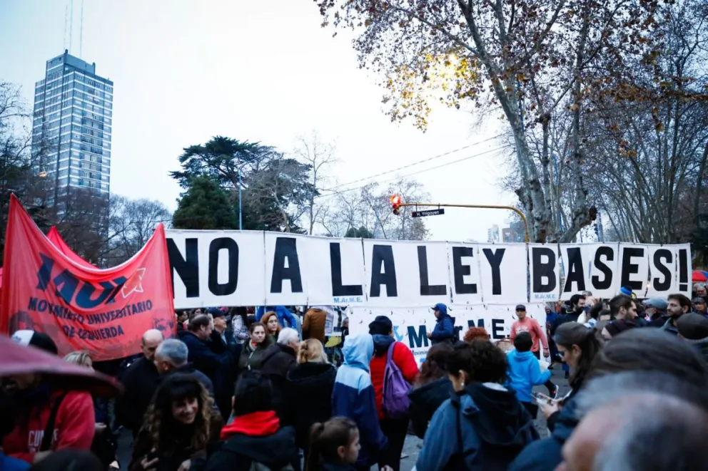 Manifestantes se movilizan en el centro de Mar del Plata en contra de la Ley Bases