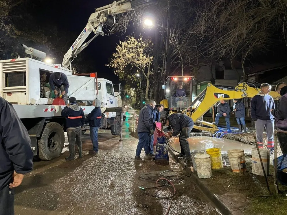 Se rompió un caño de impulsión de OSSE y trabajaron hasta la madrugada para repararlo