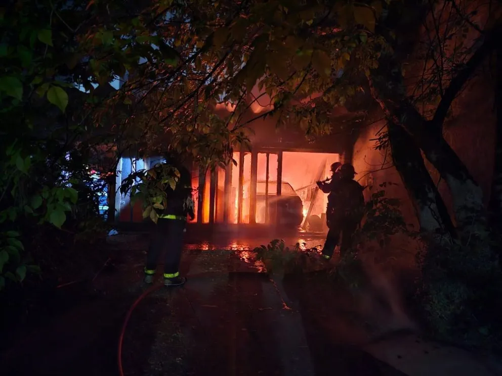 Se incendió un auto en una casa