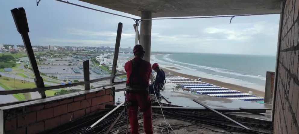 Desmontaron y retiraron elementos con riesgo de caída en un edificio abandonado de Punta Mogotes