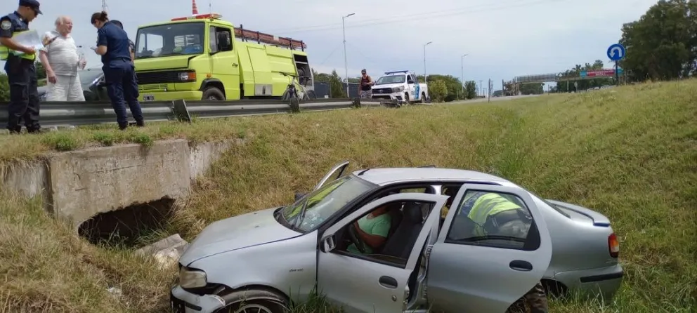 Despiste en la Autovía 2: un auto terminó en el canal de desagüe