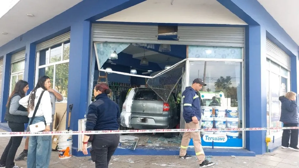 Impactante choque terminó con un auto dentro de una pinturería en Peralta Ramos y Vértiz