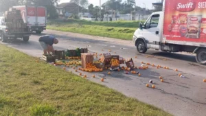 Caída de cajones de frutas y verduras generó caos vehicular en la Ruta 88