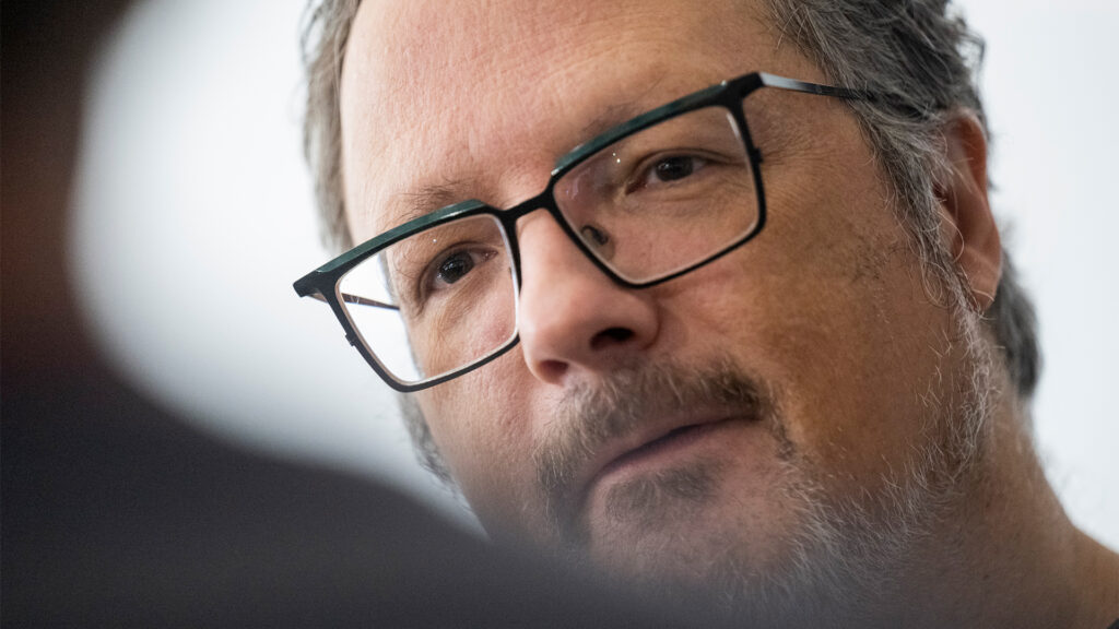 Invitado como tercer expositor internacional del programa “Presente Continuo” que articula arte, ciencia y tecnología, habló acerca de su práctica de tres décadas y acerca de la interacción de los lenguajes artísticos sustentados en las plataformas y los recursos.