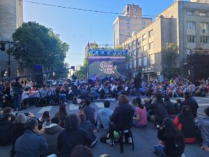 Un gran marco de público espera por el encendido del tradicional Árbol Navideño
