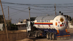 Los vehículos cisterna transportaron insumos desde Egipto a las organizaciones humanitarias de la ONU a través del paso fronterizo de...