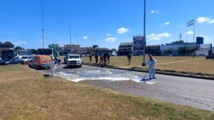 Caos vehicular en Colón y Champagnat por el derrame de aceite y aserrín de un camión
