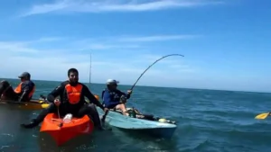 Investigadores realizan una encuesta para pescadores en kayak