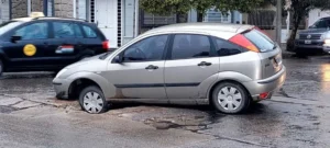 Una picardía que costó caro: corrieron vallas de protección y un auto cayó en un pozo de obra de OSSE