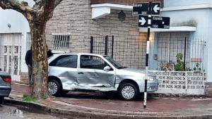 Violento choque en España y Balcarce: un Gol terminó completamente sobre la vereda