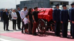 Durante el funeral de Estado, el féretro fue instalado en la capilla ardiente, en el Salón de Honor, adonde fue...