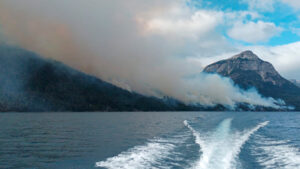 El incendio se desarrolla en el área sur del Parque Nacional Nahuel Huapi, en la zona de Brazo Tristeza, y...