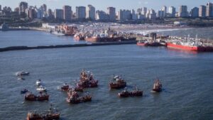 El buque En May, de bandera liberiana, se dirigía a buscar carga al puerto de San Lorenzo, en Santa Fe....