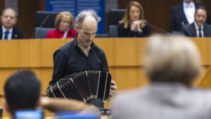 El músico argentino Marcelo Nisinman toco el jueves en una sesión especial del Parlamento Europeo, en Bruselas, con motivo del...