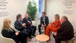 En la reunión también estuvieron presentes la secretaria general de la Presidencia, Karina Milei, y el embajador argentino ante los...