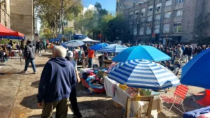 Los feriantes de la Bristol montaron sus puestos frente al palacio comunal en reclamo por el desalojo
