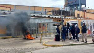 Protesta en una empresa de conservas de pescado